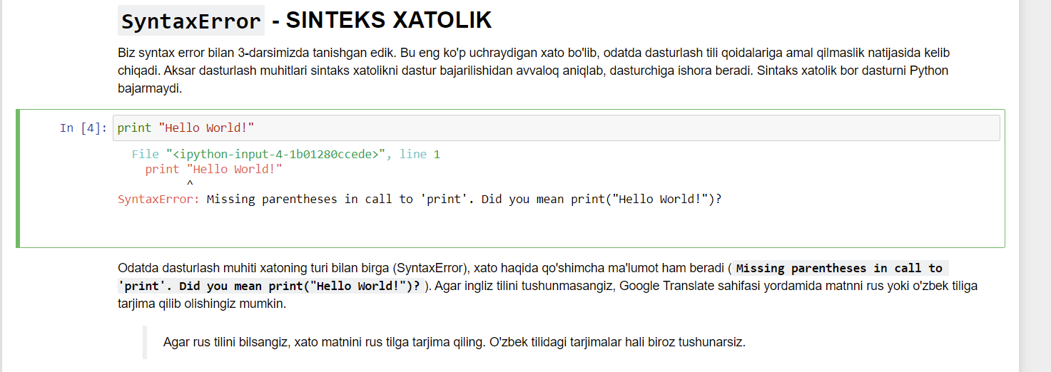 Saytimiz ilk bor e'lon qilinganidan so'ng ko'p o'zgartirishlar kiritildi. Shunday o'zgatirishlardan biri bu - dasrsiligmizning barcha bo'limlar maxsus Jupyter notebook standartida qayta yozildi.